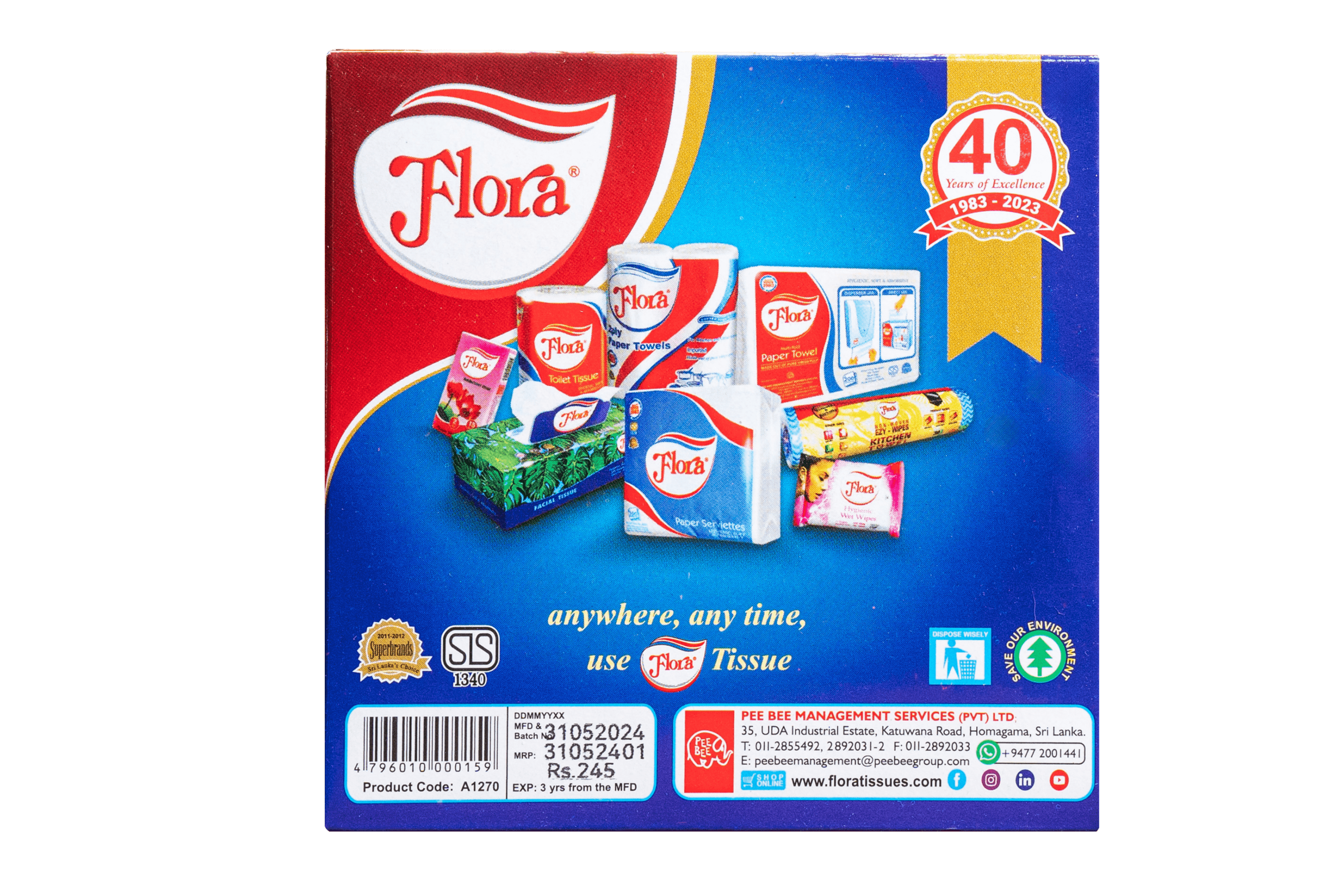 Hygienic, Soft and Absorbent Flora Facial Tissue is certified as SLS 1340 by the Sri Lanka Standards Institution. Flora Facial Tissues is available in four different sizes, namely 50’s, 100’s, 160’s and 200’s sheets per box.