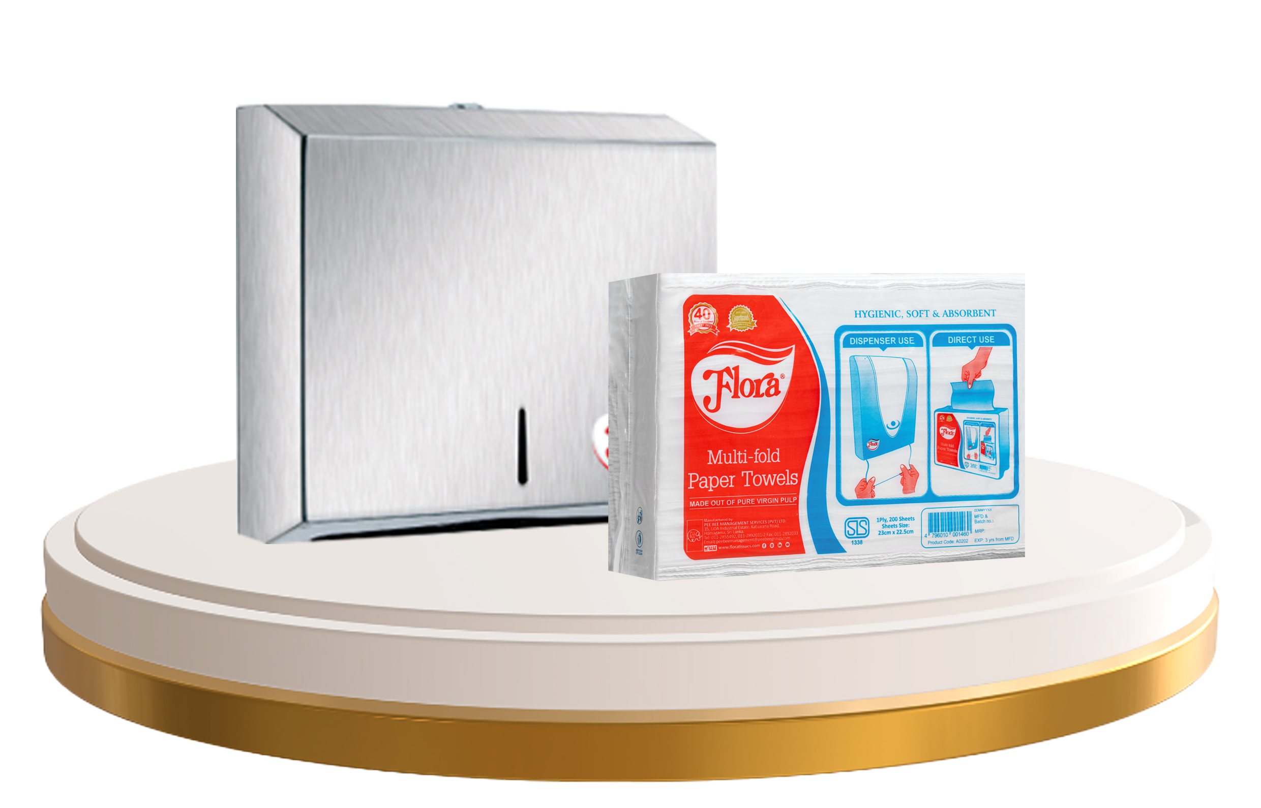 MULTI-FOLD PAPER TOWEL STAINLESS STEEL DISPENSER BUNDLE.