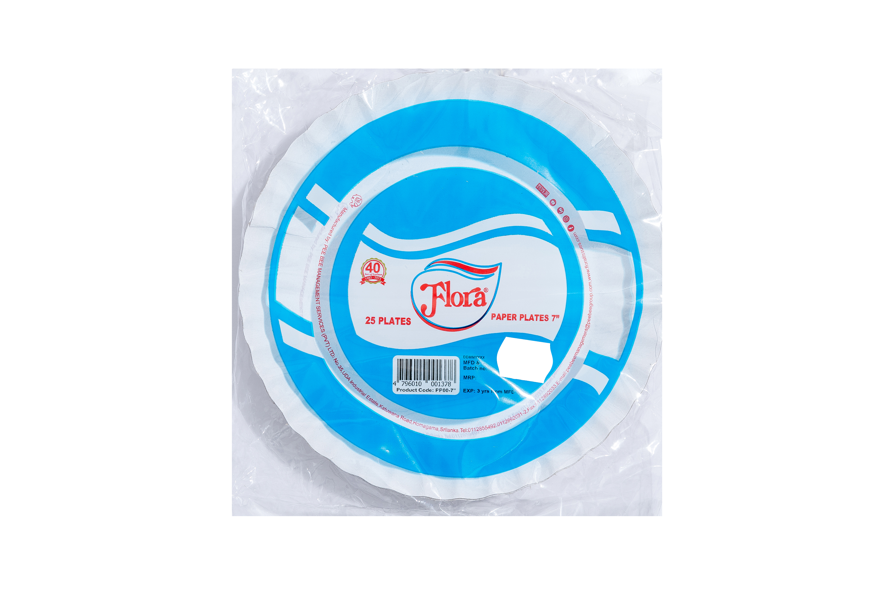 4 sizes of paper plates are available in the Flora Paper Plate range. 7”,8” & 9” are the diameters available. 25 plates are packed in each pack. This product is useful for having/serving snacks at an event. Flora paper plates are hygienically produced and packed. This range of products is available in all supermarkets, pharmacies, groceries and wholesale shops in the local market.