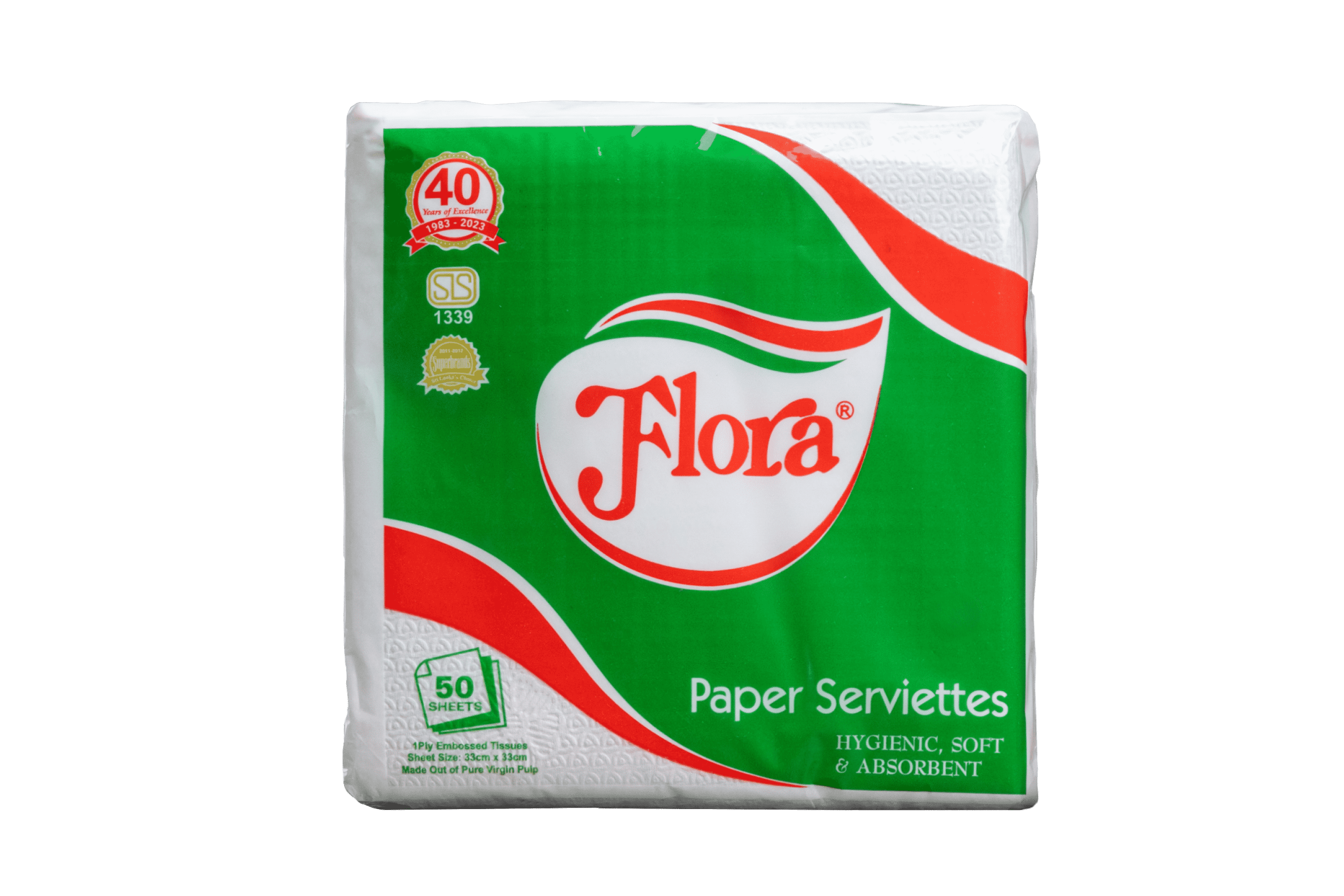 FLORA PAPER SERVIETTES 1PLY 50 SHEETS