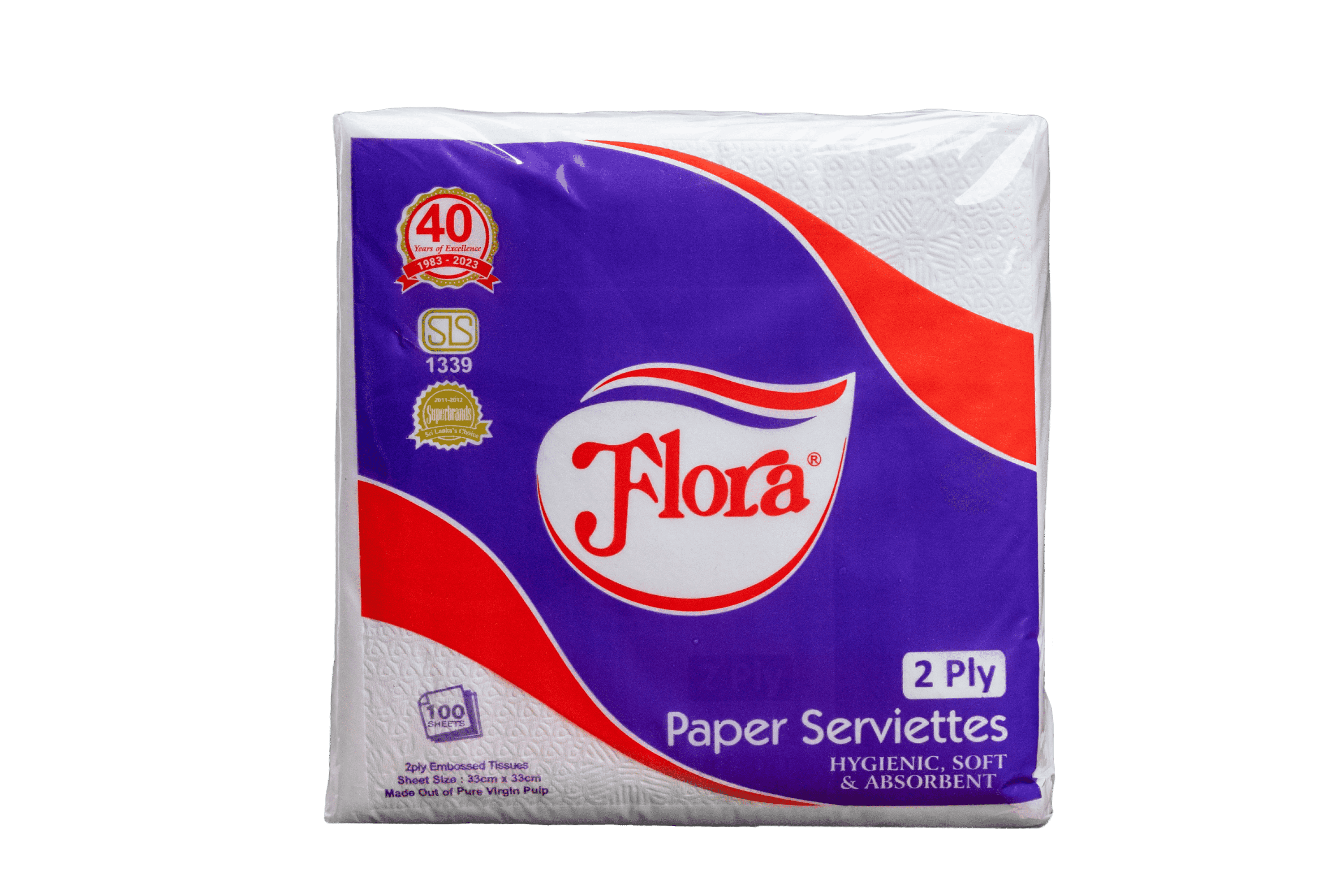 FLORA PAPER SERVIETTES 2PLY 100 SHEETS