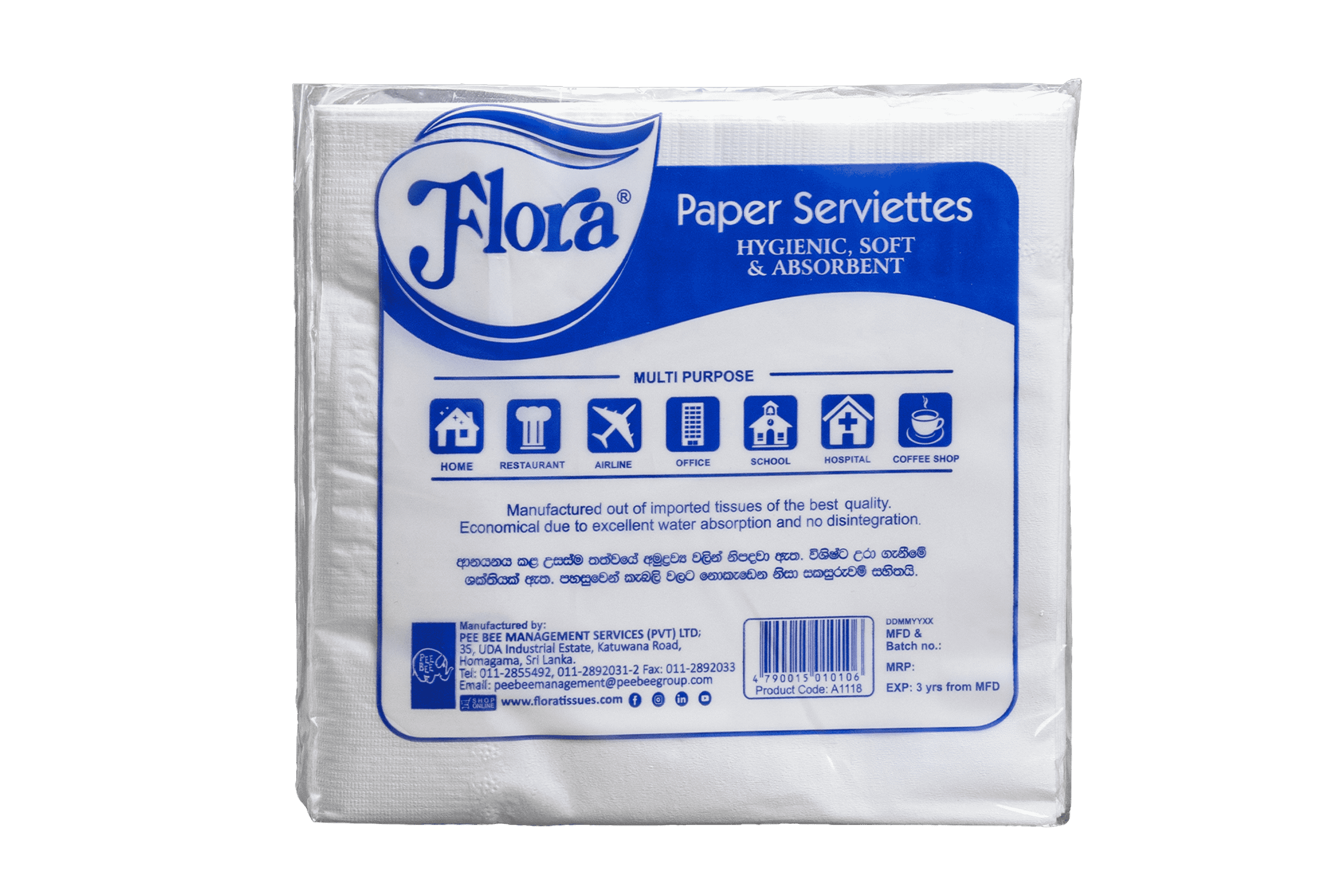 Flora Paper Serviettes 2 ply paves way for you to wipe your hands and mouth better after a meal. It absorbs oil and water much better and does not disintegrate. This also can be used for functions or parties in hotels or at home. You may even use it for wiping and wrapping glasses, cutlery and plates and also cleaning glass windows and table tops. 4 variants are available in the range out of which 2 are Cocktail Napkins. Cocktail Napkin 2 ply 250’s is available in a box used by hotels while the others are in polythene packs. All variants except for 250’s box are available for you in supermarkets, pharmacies, groceries and wholesale shops in the market.